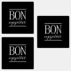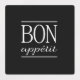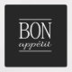 BON APPETIT Food Labels. Wasserdichte schwarze Aufkleberblätter mit weißem BON APPETIT Food Anführungstext. Erhältlich in quadratischer und runder Form.