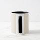 Eine helle, solide Tasse "Bone White" und Black Combo. Bone White ist ein cremefarbenes, eine Farbe ähnlich hellbeige. Klicken Sie auf "Anpassen", um die Farbe zu ändern oder ein Muster oder Design hinzuzufügen. Produkt-Hex-Code: #e3dac9