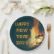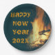 Backyard Bonfire Silvester Party Papier Teller. Teller sind in zwei Größen erhältlich und haben ein brennendes Feuerbild und einen eigenen Text. Der Sample-Wortlaut ist "Happy New Year" mit Jahresdatum und ist leicht zu ändern für Ihre Bedürfnisse. Dunkelblaue Farbe mit orangefarbenem und gelbem Feuer und bedrücktem Schriftart in Orange.