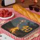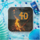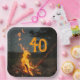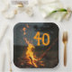 Geburtstagsparty-Teller mit Altersvorschau. Feiern Sie einen Meilenstein mit einer Ansammlung im Freien rund um die Feuerstelle im Hinterhof. Geben Sie das Alter in dunkelorange ein oder entfernen Sie die Zahlen. Teller sind in zwei Größen rund oder quadratisch.