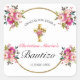 Envíe invitaciones de bautismo o tarjetas de agradecimiento por el bautismo de su hija y selle el sobre con esta bonita pegatina de sello de sobre de bautismo floral. Este krankño presenta una elegante cruz dorada con detalles florales rosas y un marco dorado.
