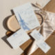 Say merci beaucoup im Stil mit diesem eleganten französisch inspiriert Baby Dusche Gefälligkeitsbox. Mit weichen, staubblauen Tönen, einem blauen Bogen und anmutigen Schriften verbindet sich dieses Design perfekt mit jedem Pariser oder Coquette-Fest.