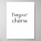 Bonjour Chérie, hello dear in French. Typography in black and (transparent) white. You can change the background color.