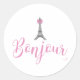 Bonjour-Eiffel Tower Bow Unique Runder Aufkleber