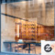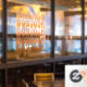 Bonjour | Französischer Hallo in Brown Groovy Typo Fensteraufkleber