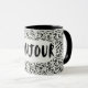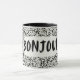 Catch the trend with this eye-catching "Bonjour" mug, blending a nostalgic pattern with a chic, modern greeting.