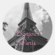 Bonjour Paris Black White Eiffel Tower France Runder Aufkleber