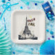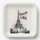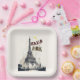 Bonjour Skyline Marathon Paris. Papier Teller, 9" quadratische Papierplatte. Kaufen Sie die besten Geschenke am Eiffelturm Tag 31 März für Ihre Familie, Freundin, Freund, Mutter, Vater, Kinder, Sohn und Tochter. #paris