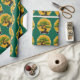 Eine schöne Abbildung eines Bonsai-Baumes, der in einem schwarzen Topf mit einem hellgelben, runden Hintergrund sitzt.