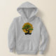 Eine schöne Abbildung eines Bonsai-Baumes, der in einem schwarzen Topf mit einem hellgelben, runden Hintergrund sitzt.