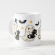 Bootidenkrau - diese Tasse bietet fröhliche Geister, eine seltsame Schwarzkatze und flatternde Fledermäuse für einen hellen Halloween-Flair.
