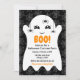 Adorable Halloween ghost and spider on a black background with white cobwebs.