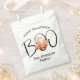 Glückliche Halloween Boo moderne Gefälligkeitssäcke mit niedlichem Geist, Typografie auf weißem Hintergrund. Halloween-Taschen mit dem Familiennamen. Personalisieren Sie den Text einfach. Kate Eden Art