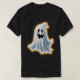 Ein niedliches kleines Gespenst zu Halloween. Weiß mit schwarzen Augen und Mund und in Orange umrissen.