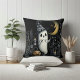 Ein Wurfkissen, das der Grandeur und Lustigkeit von Halloween entspricht. Das Kunstwerk enthält Halloween-Geist, die niedliche und gruselige ghoul BOO. Der Text kann einfach mit eigenen Worten angepasst werden.