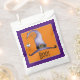 Die lustige Halloween-Fvor-Tasche zeigt eine Aquarellillustrierung eines lila Hexenhutes mit hängender Spinne und weißem "Boo!"-Text auf orangefarbenem und lila Hintergrund.