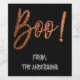 Boo! Modernes Halloween Weinflaschenetikett, das als Boo'ed oder Halloween-Party Geschenk gegeben werden soll.