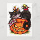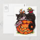 Halloween Grußkarte. Schwarze Katzen und Spinnen