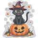 Feiern Sie Halloween mit diesem hübschen, schwarzen Katzenaufkleber, der auf einem geschnitzten Kürbis sitzt und mit einem Hexenhut versehen ist! Ideal, um Ihren Halloween-Dekorationen, Scrapbooks oder Trick- oder Leckerei-Taschen eine lustige und spielerische Touch hinzuzufügen. Das niedliche Design mit lebhaften Farben und charmanten Details macht diesen Aufkleber ideal für Halloween-Partys, Kinderhandwerk und saisonale Dekoration. Egal, ob Sie in den spukhaften Geist eintauchen oder festlichen Spaß hinzufügen möchten, dieser Aufkleber ist die perfekte Wahl für jedes Halloween-Projekt.