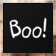 Boo lustige niedliche handgeschriebene Typografie Halloween dekorative Fensterklammern, Schild. Weißer Text, schwarzer Hintergrund.