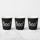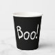 Boo Schwarz-Weiß lustige niedliche handgeschriebene Typografie Halloween-Party Papiertassen. Weißer Text, schwarzer Hintergrund.
