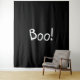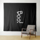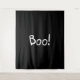 Boo Schwarz-Weiß lustige niedliche handgeschriebene Typografie Halloween Dekorationsband, Schild. Weißer Text, schwarzer Hintergrund.
