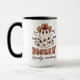 Halloween große Tasse mit "BOOHAW"-Text und einem niedlichen Western Retro Groovy Geist mit einem Cowboy, der in Komfort Farben alles auf dem weißen Hintergrund platziert. Sie können den Text ganz einfach unter dem Bild personalisieren oder ihn leer verlassen - Kate Eden Art