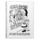 Eine Frau frage einem Ladenbesitzer in einem Buchladen, was er für einen Mann hat, der alles weiß. Der lustige Cartoon des britischen Karikaturisten Nigel Sutherland. Funny Bookseller Notebook.