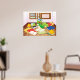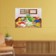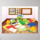 Ein grüner Bücherwurm im Stil eines Cartoon in einem Klassenzimmer. Dieses Design sieht wirklich effektiv aus auf diesem Poster