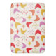Das elegante Boomerang Muster aus der Mitte des Jahrhunderts ist in Rosa, Gelb, Rot und Orange gehalten, mit atomaren Sternenbursten im Retro-Stil. Es ist eine großartige Badematte für jeden, der Mitte des Jahrhunderts Liebe und Atomzeitalter Geschmackssinn inspiriert hat