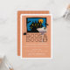 Diese niedliche Einladungskarte des "Boos & Booze"-Halloween-Party bietet einen Cocktail im Augapfel, Fledermäuse und Spinnen vor einem Spuk Haus auf orangefarbenem Hintergrund, das von einem weißen Rand gerahmt ist. Die Rückseite weist orangefarbene Polka-Punktmuster auf. Personalisieren Sie es für Ihre Bedürfnisse. In meinem Geschäft finden Sie passende Produkte.
