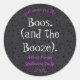 Die perfekte Dekoration für Halloween-Partys - man kann diese Aufkleber auf alles stellen! Boos und Booze Adult Halloween Cocktail Party Suite. Dieser personalisierte Aufkleber hat eine benutzerdefinierte Meldung über einen schwarz gesprenkelten Hintergrund. Spooky Typografie und ein Schwarz, Grün und lila Thema geben Ihren geladenen Gästen eine lustige Dekoration in einem sicherlich spoktaculären Party! Alle Texte können bearbeitet werden - klicken Sie einfach auf die Schaltfläche Personalisieren rechts. Karo die passenden Dekoelemente in der Kollektion!