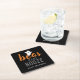 Moderne und niedliche "Boos and Booze"-Halloween-Party-Untersetzer sind mit orangefarbenen, kohlegrauen und weißen Schriftzeichen mit einem kleinen Geisterakzent versehen.