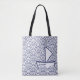 Eine Tasche mit einem Boot auf einem japanischen Wellenmuster. Passen Sie es mit Ihrem Namen oder Ihrem eigenen Text an.