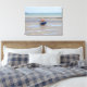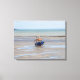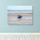 Eine schöne Aussicht auf ein kleines blaues Boot bei Ebbe auf einer Leinwand gedruckt.