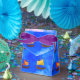 Boote Aquarellfarbe Blaue Hintergrundeinflüsse Zel Geschenkschachtel
