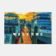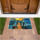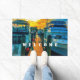 Dieses Doormat zeigt ein Originalfoto von ZoeSPEAK von einem Sonnenuntergang über dem Hafen. Der Holzsteg zwischen zwei Booten wird von der Sonne beleuchtet und sieht fast so gelb orange aus wie der Himmel. Die beiden Boote sind im Schatten, in bläulichen Weiß gehalten, und bilden eine beruhigende Szene in komplementären Farben. Es gibt Text lesen "WELCOME", das ist Set für Sie zu personalisieren, oder zu löschen, wenn Sie es vorziehen.