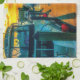Dieses Küchentuch verfügt über ein Originalfoto von ZoeSPEAK eines Sonnenuntergangs über dem Hafen. Der Holzsteg zwischen zwei Booten wird von der Sonne beleuchtet und sieht fast so gelb orange aus wie der Himmel. Die beiden Boote sind im Schatten, in bläulichen Weiß gehalten, und bilden eine beruhigende Szene in komplementären Farben.