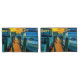 Dieses Set von Pillowcases zeigt ein Originalfoto von ZoeSPEAK von einem Sonnenuntergang über dem Hafen. Der Holzsteg zwischen zwei Booten wird von der Sonne beleuchtet und sieht fast so gelb orange aus wie der Himmel. Die beiden Boote sind im Schatten, in bläulichen Weiß gehalten, und bilden eine beruhigende Szene in komplementären Farben.