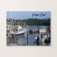 Dieses Puzzlespiel kennzeichnet ein landschaftliches Foto der Boote, die in einem Hafen auf Cape Cod im Abendssonnenlicht angekoppelt werden.