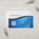Bootfahrt-Visitenkarten mit modernem Entwurf, der ein Schiffsradsymbol umfaßt, Text können Sie die Farbe oder anreden und schönen blauen Hintergrund leicht ändern, der wie Wasser aussieht. Entworfen für Bootscharterfischen, einen Schiffskapitän oder Jachthafen.
