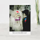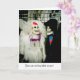 Halloween Card mit einem beängstigenden Skeletthaus auf der Vorderseite als Braut und Bräutigam verkleidet. In der Bildunterschrift steht: "Du bist so schön zu mir"