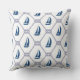 Ein sich wiederholendes Muster zeigt blaue Segelboote, die in einem Gitter angeordnet sind, das durch Seilknoten gebildet wird. Das Thema Wassersport wird durch die konsequente Platzierung und maritimen Elemente betont, die ein beruhigendes und harmonisches visuelle schaffen.
