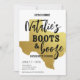Mit dieser fabelhaften Boot & Booze Texas Bachelorette Einladung lassen Sie Ihre Texas Bachelorette-Träume wahr werden. Setzen Sie den Fokus auf die glückliche Dame mit ihrem glamourösen Schwarz-Gold-Design und Texas Gold-Karte, bereit für sie, ihre Stiefel zu holen und eine gute Zeit!