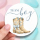 Boots or Bows Gender Reveal Blue Team Boy Runder Aufkleber