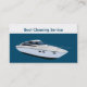 Ist hier eine einfache Bootsreinigungsservice-Geschäftskartenschablone mit Bild eines Bootes auf der Front mit Ihrem Namen oder Firmennamen, die angezeigt werden und Ihre ganze Services und Kontaktinfo auf der umgedrehteseite.