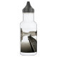 Schwarz-Weiß-Foto eines Bootssteaks auf einem See.