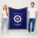 Weißes Schiff Lenkrad mit Kompass Rose Bootsleben Navy Blau und Weiß Fleece Blanket. Diese Decke ist Ihrem Boot mit seinem Namen gewidmet. Sicheres Segeln und gleichmäßige Lenkung am Steuer. Eine maritime und klassische Decke perfekt für das Boot, gemütlich aufstehen und auch an den späten Sommerabenden mit cooler Brise warm behalten. Der Text ist individuell einstellbar, fügen Sie oben Ihren Namen des Bootes und bevorzugten Text unter wie Familienname, Standort oder andere. Erhältlich in verschiedenen Größen und Farbkombinationen. Wenn Sie keine weiteren Anpassungen vornehmen möchten (Stil, Größe, Platzierung und Farbe des Schriftartes), können Sie dies im Designwerkzeug tun. Sie können dieses Design auch mit dem Transfer Tool auf andere Produkte übertragen.