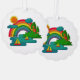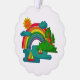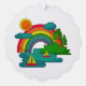 Bootslandschaft unter Sonnenwolken und Regenbogen Ornament Karte