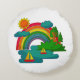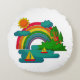 Bootslandschaft unter Sonnenwolken und Regenbogen Rundes Kissen